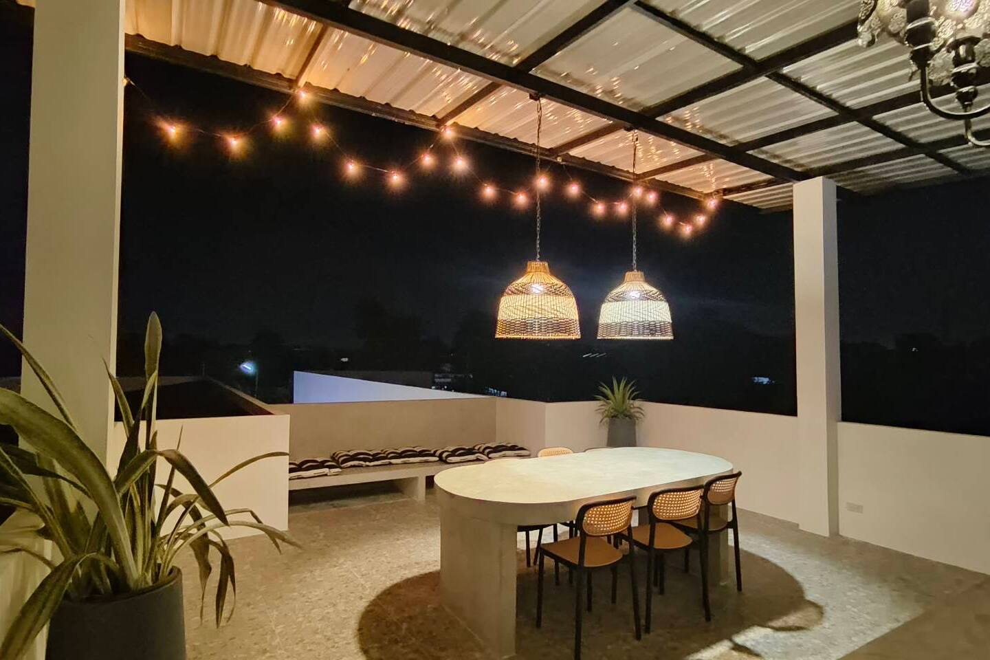 This lively tropical villa in the prime location in Chiangmai is perfect for large groups and gatherings with families or friends. The villa has various facilities including large swiming pool, jacuzzis and pool table for full entertainment. Our rooftop overlooks the view of Doi Suthep, our most sacred mountain. In this location with easy commute to the city, close to convenient stores, and fresh markets. We also provide food and transportation services upon request at the guests own expenses.